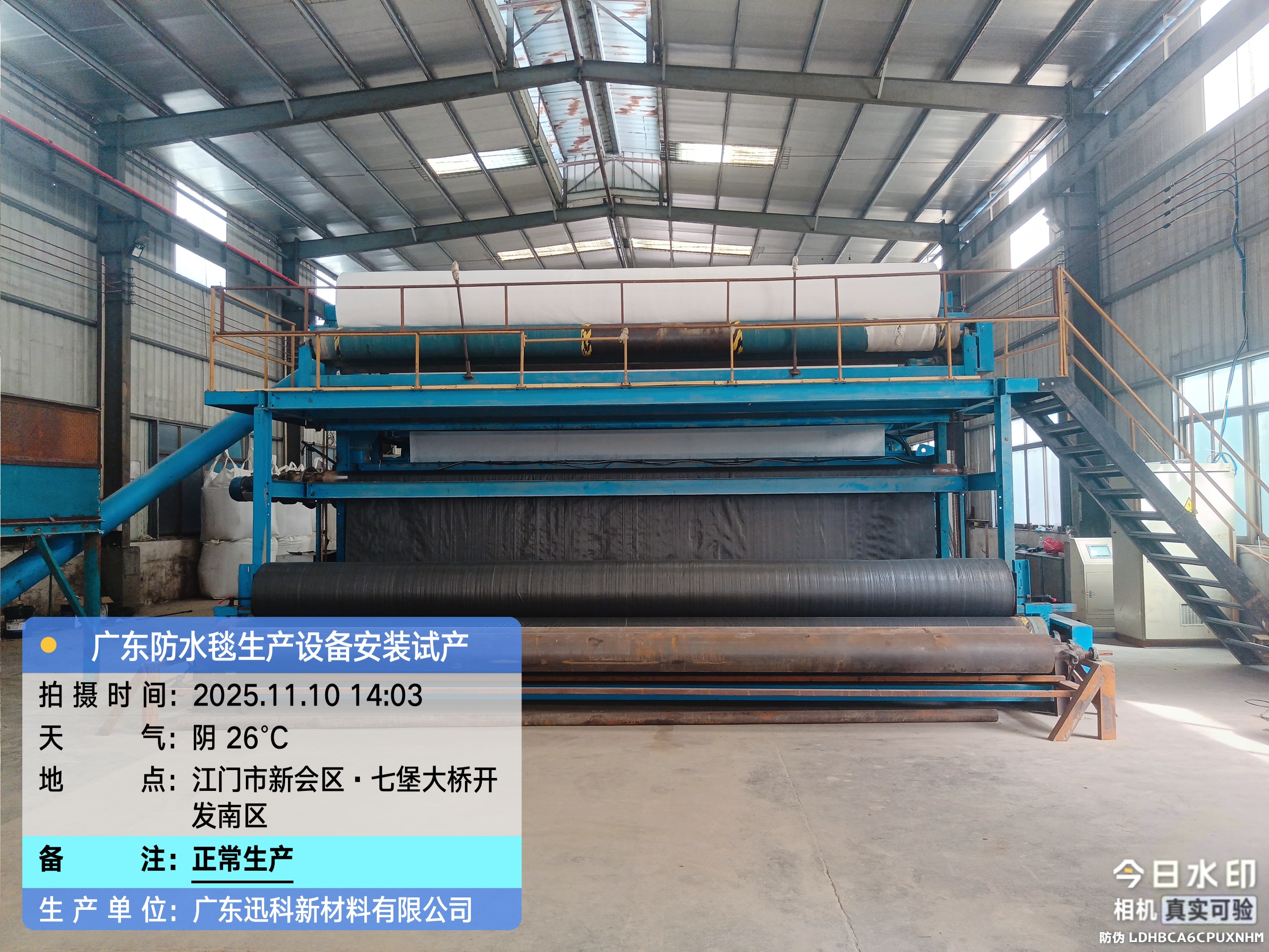廣東迅科新材料有限公司生產基地美麗的江門市,是一家專業研發生產天然鈉基膨潤土防水毯(GCL-NP)、覆膜型天然鈉基膨潤土防水毯GCL-OF、雙面針刺型膨潤土防水毯,水泥毯等新型建筑環保材料的企業,公司最新“強覆膜型天然鈉基膨潤土防水毯改進設備生產線于2025年試產成功并投產,采用國內最新先進的針刺工藝,是國內唯一加強覆膜型天然鈉基膨潤土防水毯一次生產成型廠家,迅科新材料是國內新型環保防滲材料的生產商,是一家集材料研發、生產銷售、施工服務于一體的高科技企業。